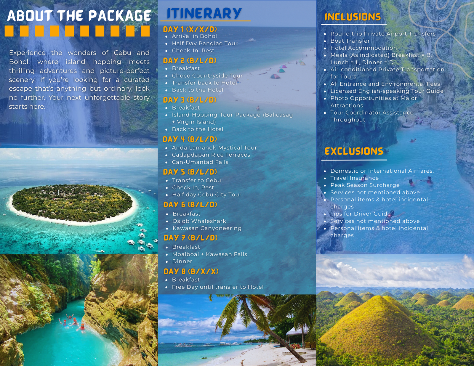Experience the wonders of Cebu and Bohol, where island hopping meets thrilling adventures and picture-perfect scenery. If you’re looking for a curated escape that’s anything but ordinary, look no further. Your next unforgettable story starts here.